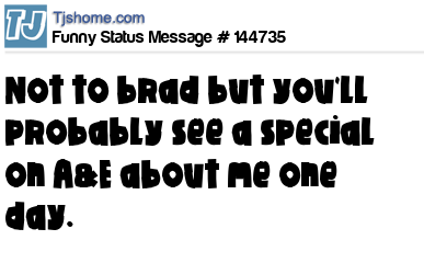 X says Not to brad but you'll probably see a special on A&E about me one day.