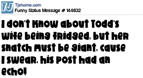 X says I don't know about Todd's wife being fridged, but her snatch must be giant, cause I swear, his post had an echo!
