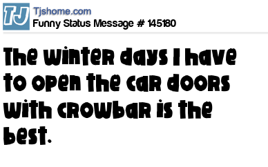 X The winter days I have to open the car doors with crowbar is the best.