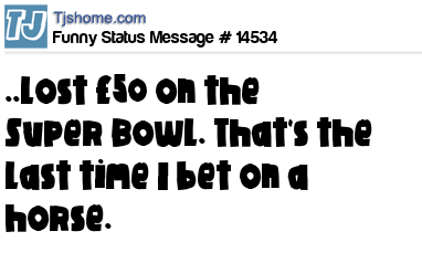 X ..lost £50 on the Super Bowl. That's the last time I bet on a horse.