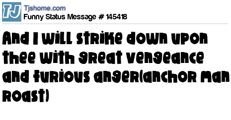 X says And I will strike down upon thee with great vengeance and furious anger(anchor man roast)