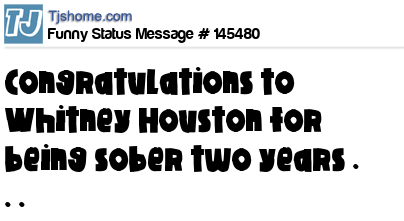 - # 91451 In honor of my childhood idol, Whitney Houston, who has been sober for 10 days now, I am giving up beer for Lent. She is a true inspiration and a hero...