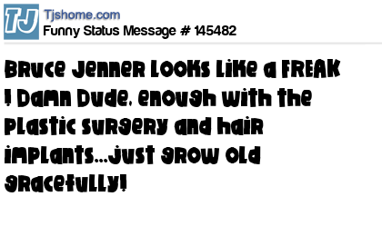 X says Bruce Jenner looks like a FREAK ! Damn Dude, enough with the plastic surgery and hair implants...just grow old gracefully!