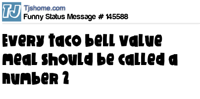 - # 145442 I think every Taco Bell value meal should be called a "Number 2".