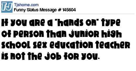 X says If you are a "hands on" type of person than junior high school sex education teacher is not the job for you.