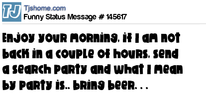 X says Enjoy your morning, if I am not back in a couple of hours, send a search party and what I mean by party is.. bring beer. . .