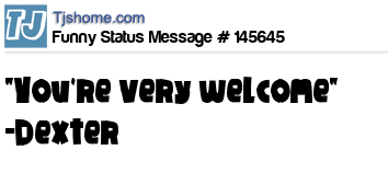 X says "You're very welcome" -Dexter
