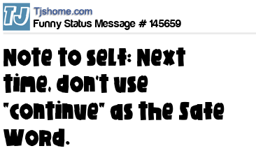 X says Note to self: Next time, don't use "continue" as the Safe Word.