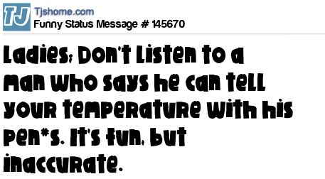 X says Ladies; Don't listen to a man who says he can tell your temperature with his pen*s. It's fun, but inaccurate.