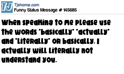 X says When speaking to me please use the words "basically" "actually" and "literally" or basically, I actually will literally not understand you.