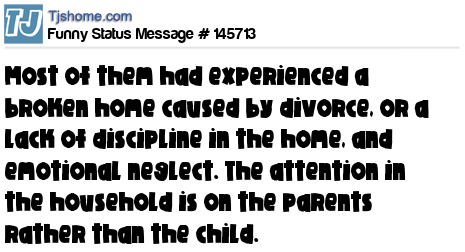 X Most of them had experienced a broken home caused by divorce, or a lack of discipline in the home, and emotional neglect. The attention in the household is on the parents rather than the child.
