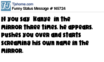 - # 163083 If you say "Kanye" in the mirror three times, he appears, pushes you over and starts screaming his own name in the mirror.
