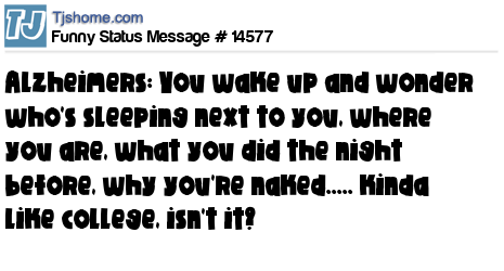 X Alzheimers: You wake up and wonder who's sleeping next to you, where you are, what you did the night before, why you're naked..... kinda like college, isn't it?