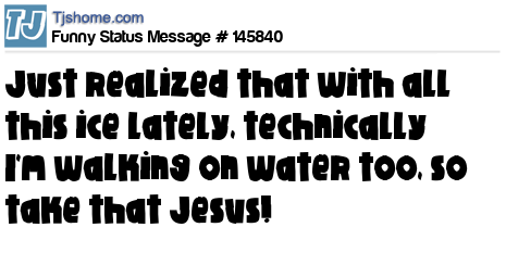 X says Just realized that with all this ice lately, technically I'm walking on water too, so take that Jesus!