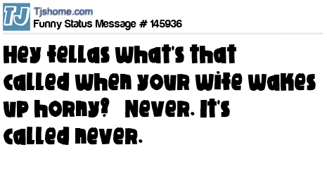 X says Hey fellas what's that called when your wife wakes up horny? Never. It's called never.
