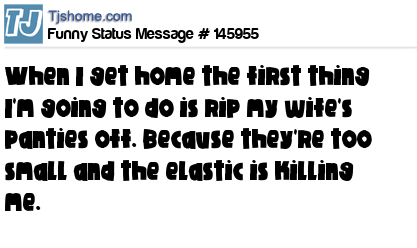 X says When I get home the first thing I'm going to do is rip my wife's panties off. Because they're too small and the elastic is killing me.