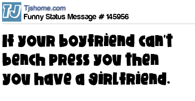 X says If your boyfriend can't bench press you then you have a girlfriend.
