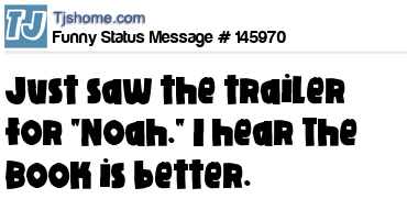 X Just saw the trailer for "Noah." I hear The Book is better.