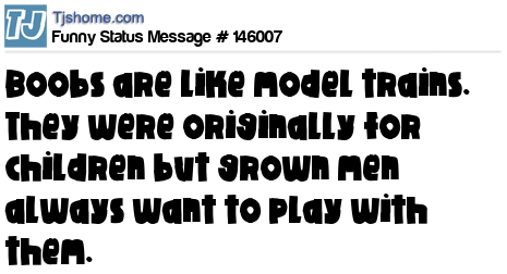 - # 145964 Breasts are like model trains. They were originally meant for children but grown men always want to play with them.