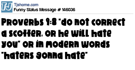X says Proverbs 9:8 "do not correct a scoffer, or he will hate you" or in modern words "haters gonna hate"