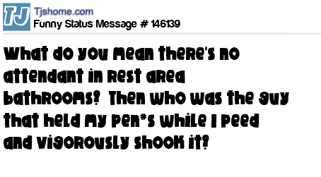 X says What do you mean there's no attendant in rest area bathrooms? Then who was the guy that held my pen*s while I peed and vigorously shook it?