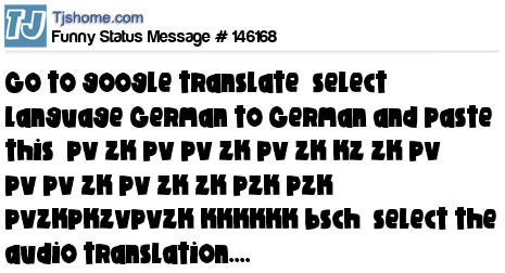 - # 38308 Go to Google Translate and translate from German to German. Paste this into the box "pv zk pv pv zk pv zk kz zk pv pv pv zk pv zk zk pzk pzk pvzkpvpvzk kkkkk bsch" Click Listen!