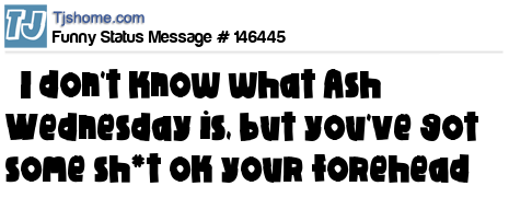 X says   I don't know what Ash Wednesday is, but you've got some sh*t ok your forehead