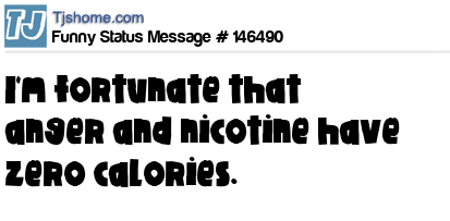 X says I'm fortunate that anger and nicotine have zero calories.