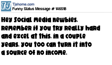 X  Hey Social media newbies, remember if you try really hard and excel at this, in a couple years, you too can turn it into a source of no income.