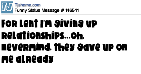 X says for Lent I'm giving up relationships...oh, nevermind, they gave up on me already