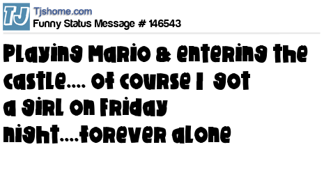 X says playing Mario & entering the castle.... of course I got a girl on Friday night....forever alone