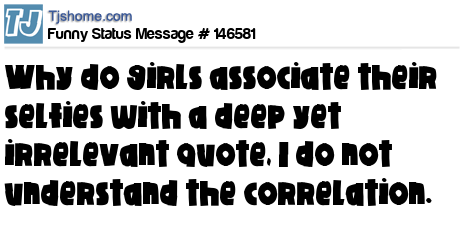 X says Why do girls associate their selfies with a deep yet irrelevant quote, I do not understand the correlation.