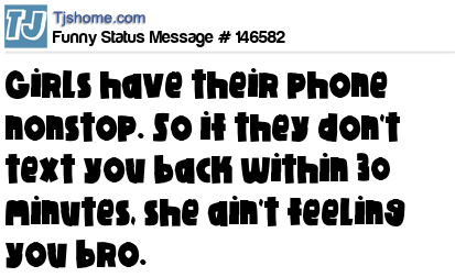 X says Girls have their phone nonstop. So if they don't text you back within 30 minutes, she ain't feeling you bro.