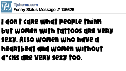 X says I don’t care what people think but women with tattoos are very sexy. Also women who have a heartbeat and women without d*cks are very sexy too.