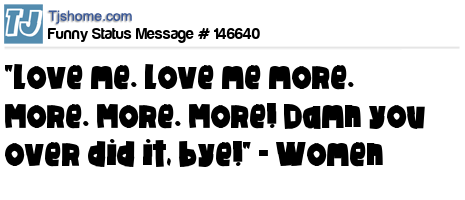 X says "Love me. Love me more. More. More. More! Damn you over did it, bye!" - Women