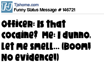 - # 153583 Officer: Is that cocaine? Me: I dunno, let me smell... (Boom! No evidence!)