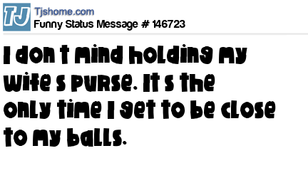 X says I don’t mind holding my wife’s purse. It’s the only time I get to be close to my balls.