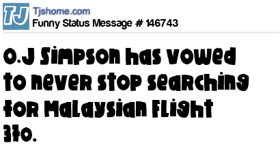 - # 146968 Please Spare a thought for the man who told his wife he was going to China on that Malaysian flight no MH. 370 and now can't come out of his girlfriend's flat.!