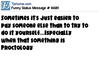 - # 16494 Sometimes it's just easier to pay someone else than to try to do it yourself… especially when that something is Proctology.