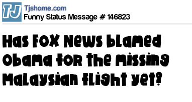 X  Has FOX News blamed Obama for the missing Malaysian flight yet?
