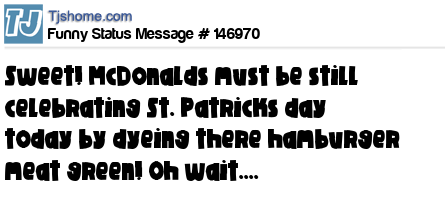 X Sweet! McDonalds must be still celebrating St. Patricks day today by dyeing there hamburger meat green! Oh wait....