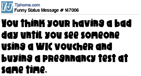 X says You think your having a bad day until you see someone using a WIC voucher and buying a pregnnancy test at same time.