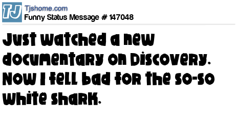 X says Just watched a new documentary on Discovery. Now I fell bad for the so-so white shark.
