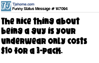 X says The nice thing about being a guy is your underwear only costs $10 for a 3-pack.