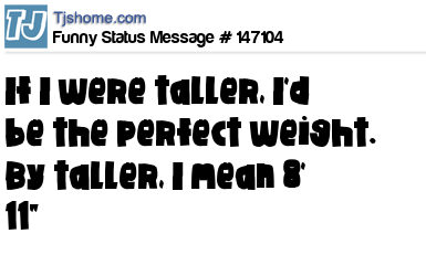 X If I were taller, I'd be the perfect weight. By taller, I mean 8' 11"