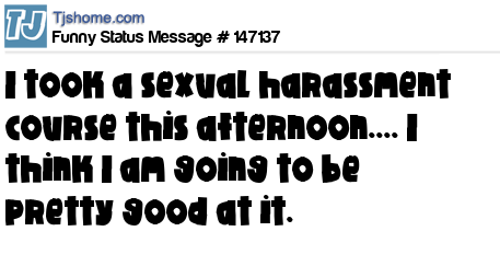 - # 127848 I took a sexual harassment course this afternoon ....I think I'm gonna be pretty good at it.