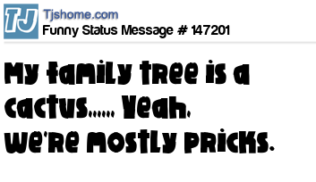 X My family tree is a cactus,,,,,, Yeah, we're mostly pricks.