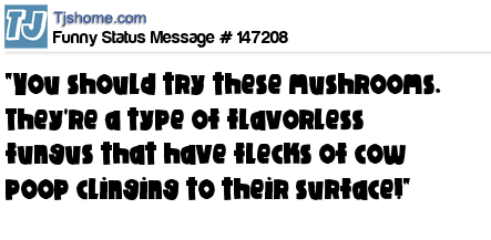X says "You should try these mushrooms. They're a type of flavorless fungus that have flecks of cow poop clinging to their surface!"