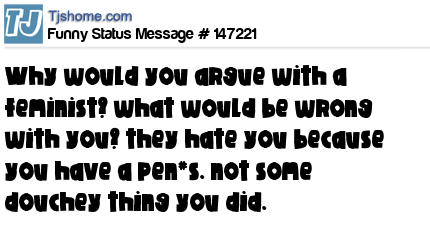 X says why would you argue with a feminist? what would be wrong with you? they hate you because you have a pen*s. not some douchey thing you did.