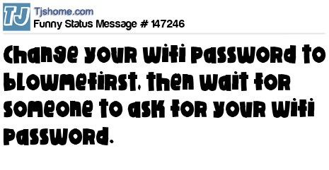 - # 143683 Step 1 - Change your Wi-Fi password to "blowmefirst." Step 2 - Wait for someone to ask you for it.